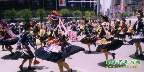 亞宜帶領眾人迎敵,戰(zhàn)斗了三天三夜,終因寡不敵眾向西撤退,得到貴州苗族支持,同官家周旋了一年。第二年四月八亞宜和貴州英雄亞努等人戰(zhàn)死在貴陽城。從那時起,“四月八”就成了青年男女聯(lián)歡節(jié)和祭祀英雄的紀念日。盡管歷代統(tǒng)治階級都以各種借口加以禁止,而具有反抗精神的苗族人民,只是改變了跳花的形式,仍然保留著聚會對歌內(nèi)容。一年一次,世代相傳,知道民國時期各地才先后中斷。后于一九八一年國家民委批示統(tǒng)一在京的苗族過“四月八”而才得到恢復。一九八六年在鳳凰上下落朝井鄉(xiāng)龍?zhí)梁哟澹?ldquo;四月八”的發(fā)源地舉行隆重聚會。這一天啟明星才掛在樹尖尖上的時候,湘黔邊境各地的男女青年,身著節(jié)日的盛裝,踏著路邊毛草上的露珠,唱著歌,吹著木葉,嘻嘻哈哈,迎著燦爛的朝露,從各條彎彎的山道上,向“跳花溝”涌來。十嶺八坡,山溝里外,龍河兩岸都站滿了人,熙熙攘攘,熱鬧非凡。會場的正中掛有寬六尺長七尺的淺紅大旗,繡有“四月八”三個大字,兩邊龍鳳圖案,莊嚴古樸,表示歷史悠久和不忘祖先功德。
