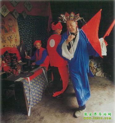 儺戲在湘西土家族地區(qū)也稱儺堂戲、儺神戲,它與土家族原始巫教、巫術的關系極為密切。土家族先民信奉的神有儺神、八部大神、土地神等,作為一種宗教活動,這種原始信仰與社會生產活動、文娛活動及民族習俗是融為一體的,因此儺戲最先的“沖儺還原”帶有明顯迷信色彩,土家族群眾中有“一儺沖百鬼,一愿了千神”的說法,湘西土家族人干脆叫它為“神戲”。湘西土家族儺戲的發(fā)展過程大體是儺、儺舞、儺儀然后才產生儺戲。儺舞源于久遠的蒙昧時期,土家先民們在同大自然作斗爭、同毒蟲猛獸作斗爭,便產生了化裝護面、在鼓樂聲中奔騰呼號、沖殺跳躍的原始儺舞,其所模擬的鳥雀舞、猿猴舞、熊舞等頗為壯觀。儺舞與儺這種驅鬼消災的祭祀儀式結合后,增加了祈求人獸平安、五谷豐登、緬懷祖先、勸人去惡從善、以及傳播生產知識等內容,這就逐漸形成了兼?zhèn)潢U弘教義及娛樂性質的祭祀風俗歌舞。[2]土家族儺戲就是在此基礎上發(fā)展起來的。部分土家族學者認為土家族儺戲的遠源可以追溯到戰(zhàn)國時代的《九歌》,《九歌》是土家族儺戲的雛形,他們的依據(jù)是當時楚國的沅湘流域,人們“信巫鬼、重淫祀”(《漢書·地理志》),從而使得“陰陽人鬼之間,又或不能無褻慢淫荒之雜”(宋代朱熹《楚辭集注》)。屈原正是加工整理了這一類“鄙陋”之詞,才創(chuàng)作出《九歌》、《天問》等名篇。也有部分學者不贊同這種論點,他們認為土家族儺在宋代還停留在儺祭和儺舞階段,最遲到明代,土家族儺才發(fā)展成為儺戲[3]。嘉靖《常德府志》記載:“歲除,歲將盡數(shù)日,鄉(xiāng)村多用巫師,朱裳鬼面,鑼鼓喧舞竟夜,名曰還儺。”文中未點明“儺戲”二字,但卻使用了“還儺”一詞,這與今天民間對儺戲的稱呼相似。又據(jù)清乾隆《永順縣志》載:“永俗酬神,必延辰郡巫師唱演儺戲,……至晚,演儺戲。敲鑼擊鼓,人各紙面一,有女裝者,曰孟姜女;男扮者,曰范七郎。”在土家族儺戲中,孟姜女傳說故事占著非常重要的地位。在湘西土家族地區(qū),儺戲一般有二十四正戲,即二十四戲神。每次儺儀結束時,巫師要用香火在黃裱紙上燒二十四個洞,以表示奠祭二十四戲神。民間有諺語:“儺神菩薩不識字,只要二十四個圈圈滿。”在二十四儺神中,被稱為勾愿神的姜女、范郎是還儺愿時非常重要的兩位神靈。在儺戲中,《孟姜女》是整場的高潮,平時,儺戲唱完后,由沒下裝的孟姜女、范郎去向主人家及觀眾“拜臺”,以示“了愿”。清代中期以后,儺戲吸取了花燈、陽戲、高腔等其他地方戲劇劇種的唱腔和劇目,逐漸變得日益成熟。我們仔細查看了全國371個劇種,發(fā)現(xiàn)儺戲、花燈戲有著相同的班社,也就是說一個演出班社可以演出儺戲、花燈戲兩個劇種。這段時期,儺戲已作為獨立戲劇劇種參加演出。由于儺戲是由巫儺法事演變而成的戲劇形式,經歷著巫儺法事(驅鬼祭祀)、儺壇上戲和儺堂正戲的發(fā)展過程。