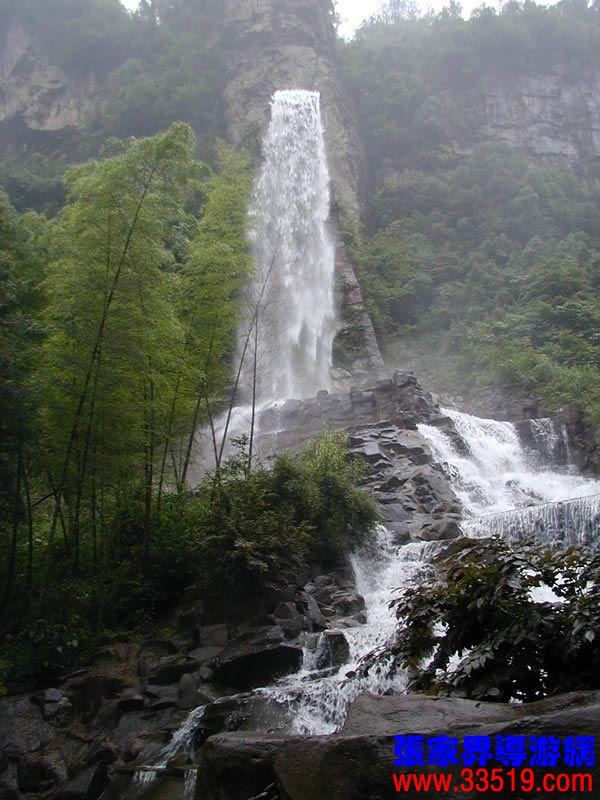 (聽(tīng)瀑樓)朋友們,寶峰湖游結(jié)束了,大家一路辛苦了?,F(xiàn)在,我提議到“聽(tīng)瀑樓”歇歇腳,洗洗汗,聽(tīng)聽(tīng)音樂(lè),養(yǎng)好精神再趕路。你們看這民族式建筑,背依砂巖石峰,面朝寶峰飛瀑,登斯樓也,品土家之香茶,聽(tīng)瀑布之濤聲,此情此景,怎不令人感嘆人與自然傾心交談的空靈境界?