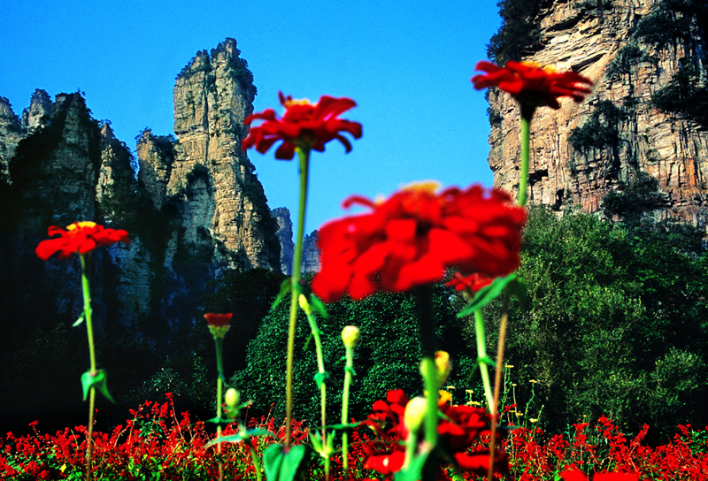 上 午: 游覽“擴大的盆景,縮小的仙境”有峰林之王稱號的---天子山景區(qū)(仙女散花、御筆峰、天子閣、云巖等景點),賀龍公園,十大元帥之一的——賀龍銅像,后前往山下的景區(qū)游覽。(下山有兩種方式:其一:可徒步經(jīng)臥龍嶺下行至山下的十里畫廊景區(qū)。其二:也可在天子山索道上站乘坐索道下山,然后再乘坐景區(qū)環(huán)保車至武陵源標(biāo)志門。