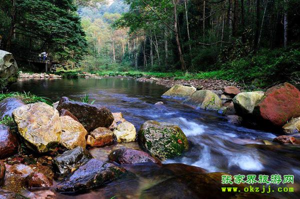 張家界是我國(guó)第一個(gè)國(guó)家森林公園,境內(nèi)奇山異水、奇花異木、奇禽異獸,奇絕天下。登黃石寨而小武陵,其山、石、云、霧、松,號(hào)稱“六奇”。金鞭溪?jiǎng)t峽長(zhǎng)谷幽,溪水清澈。