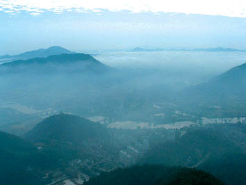 瀏陽(yáng)城西約15公里神嶺一帶,三峰鼎峙,蔥青入郭,中間有一大湖,曰巨湖,其山也叫巨湖山。巨湖煙雨乃指春夏之交,清晨山頂石煙繚繞,霧入云霄,儼若雨下,變幻萬(wàn)千,周忠信詞曰:“煙雨暗層巒,西望茫茫,樹(shù)墟城郭霧中看。氣涌潮心膚寸引,釀就輕寒。幾縷向空翻,數(shù)點(diǎn)飄殘,瀟湘彭蠡合奇現(xiàn)。疑是南宮傳筆意,水墨溪山。”