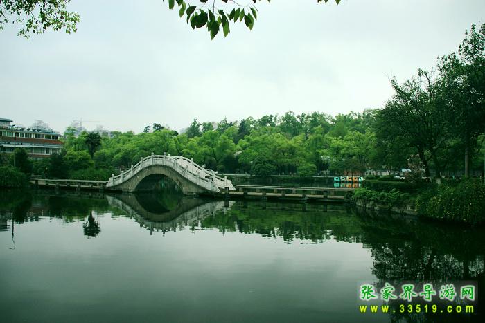 岳屏山下的原江西會館舊址,改建成為博物館,內有王夫子專館和古物商店,龍年龍展,更是令人矚目。和博物館為鄰的是花圃,四時八節(jié),有花卉幽蘭供人觀賞。同博物館只有一條馬路之隔的人工湖,是在大灣塘的基礎上疏鑿而成的,有一潭名云水池,繞池有一條環(huán)行小路,北有湖心亭,亭和湖心島之間有仿頤和園玉帶橋相聯(lián),人們可以在湖島上戲游和小憩。過曲橋、繞回廊,便是類似西湖平湖秋月形的亭榭,上有吊腳茶亭,亭上有楹聯(lián):"云岫蒼??叭氘?水波蕩漾自成文.此聯(lián)深入淺出,有雅俗共賞之妙。"
