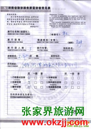 2010年5月3號湘潭王先生一行5位旅游質(zhì)量反饋