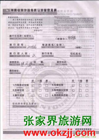 2010年6月9日張先生一行2位旅游質(zhì)量反饋