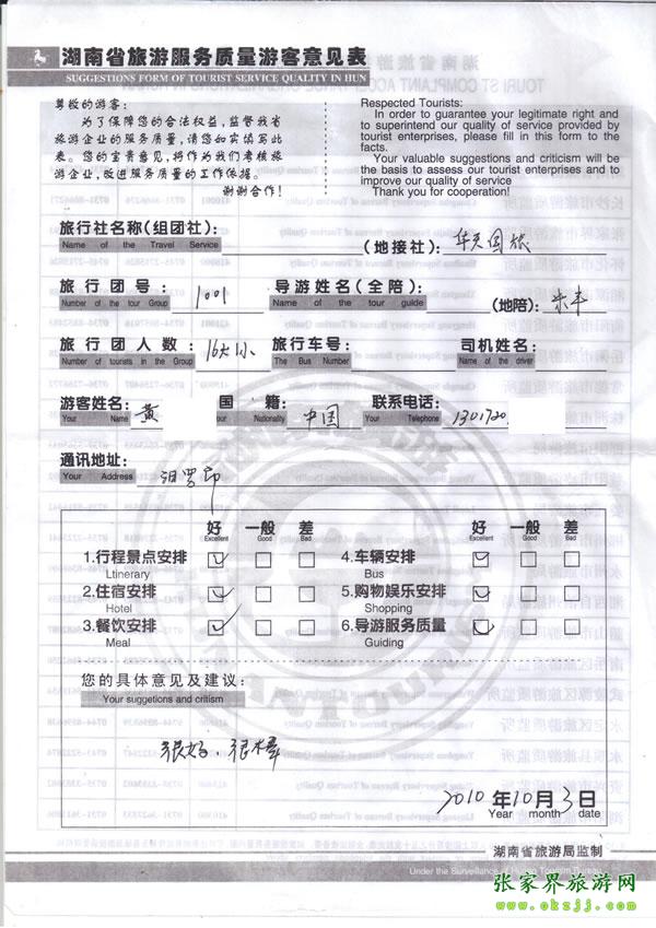2010年10月1日?qǐng)F(tuán)對(duì)導(dǎo)游米豐評(píng)價(jià):很好,很棒!