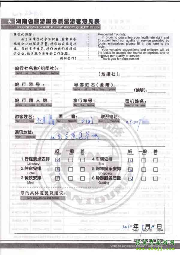 2010年9月20日北京趙先生旅游質(zhì)量反饋