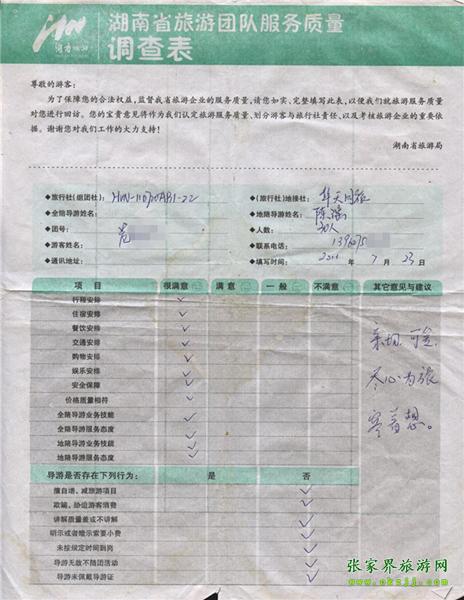 - 7月5日杭州沈先生一行18人質(zhì)量反饋單
