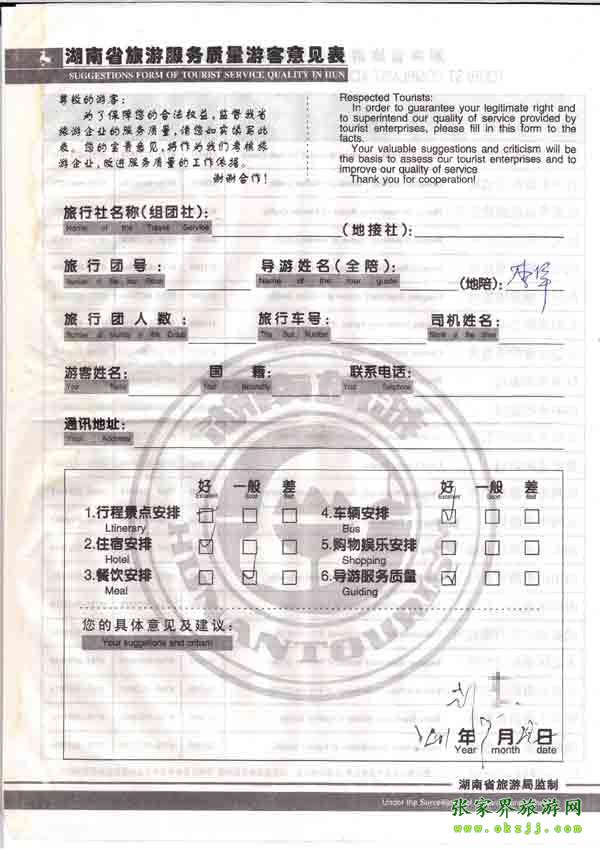 - 游客夏先生為表揚導游李姣姣寫來表揚信致我張家界... [14811]
