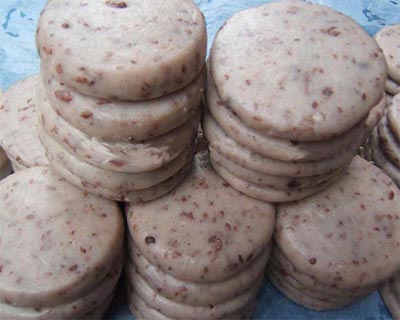 糯米洗凈,泡上一個(gè)對(duì)時(shí)后,濾干后用甑子蒸熟。然后把糯米飯盛在粑槽內(nèi)用錘打爛,再捏成大小均勻的坨子,壓薄成形,這便是糍粑。待成形的粑陰干后,泡在壇子里,十天半月?lián)Q一次水。這樣,可以放到端午節(jié),經(jīng)久不壞。 ■社飯