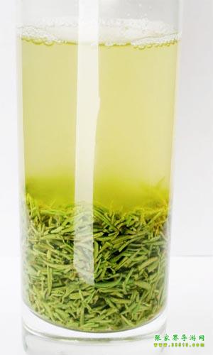 “天崇毛尖”的特點(diǎn)是:條索緊結(jié),圓渾彎曲,苗鋒顯露,披滿銀毫,色澤翠綠,清香濃郁,味清醇甘,葉底均勻,飲后有提神醒腦的功能。這種茶在制作時(shí)要經(jīng)過殺青、初揉、復(fù)炒、初烘、整形、攤涼、干果、包裝等八道工序?,F(xiàn)在,這種名茶已在永定區(qū)成批生產(chǎn),游人可以任意選購。