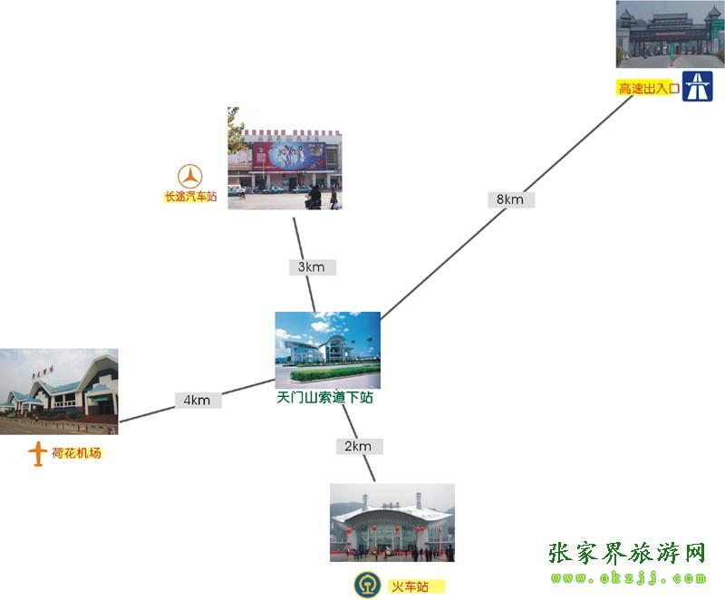 ![]() 天門山索道下站距荷花機場3公里,距火車站0.5公里,距長張高速公路出口也僅8公里之遙。景區(qū)周圍另有張羅、張清、張桑等公路通往省內(nèi)各個方向。進城公路和市內(nèi)主要道路均安裝了交通指引標(biāo)示,寬暢的道路和清晰的指引路牌使得游客抵達天門山特別方便順暢。