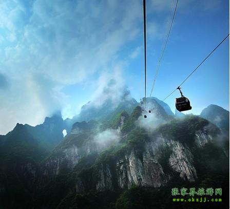 ![]() 天門山索道全長7455米,水平高差1279米,是世界最長的高山客運索道。索道修建耗時2年,耗資2.5億人民幣,其中一段有著高達38°的爬坡角設(shè)計在國內(nèi)乃至世界都極為罕見。整條索道以張家界市中心的城市花園為起點,直達天門山頂?shù)脑伎罩谢▓@,猶如一道彩虹飛渡人間天上,又似一條巨龍騰翔素云蒼穹,依山籍壁,恢宏壯觀。索道沿途經(jīng)過現(xiàn)代城市風(fēng)光,秀美田園風(fēng)光以及雄奇高山風(fēng)光,堪稱世界第一空中移動觀景長廊。
