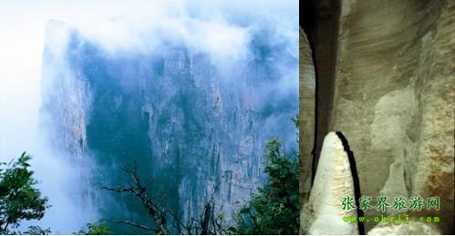 ![]() 在天門山的峭壁上,有一個方形洞口,即為天門山十六洞里最為著名的鬼谷洞.這個洞上距山頂百米,下臨深淵萬丈,地勢險峻,因鬼谷先師曾經(jīng)在此隱居修煉而得名.在“天門十景”里,鬼谷洞以“玄壁隱仙”著稱.