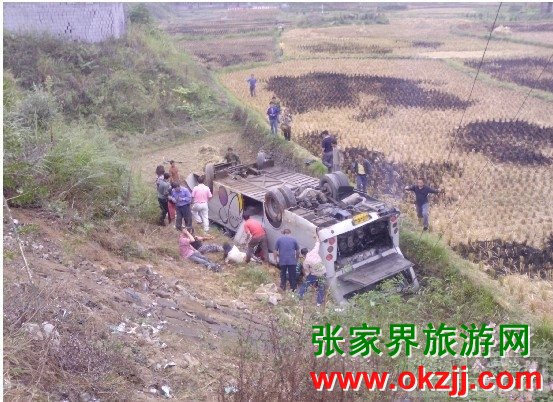 丈龍鼻嘴發(fā)生交通事故 09年9月16號(hào)下午,到古丈經(jīng)過(guò)的時(shí)候發(fā)生了一起重大交通事故.交警,消防,120都到達(dá)了,正在 展開救援,目前2死,N傷. 是一輛黑色吉普車緊急調(diào)頭,張家界的旅游大巴車速過(guò)快,沒(méi)剎住車,先是撞到路邊 的路桿,之后從變壓器旁邊沖了下去.! 這臺(tái)張家界旅游車(湘GY1133)在經(jīng)過(guò)古丈境內(nèi)時(shí)發(fā)生翻車事故,目前已經(jīng)造成2人死亡,多人受傷, 尚不知道出事車上導(dǎo)游和司機(jī)生死情況,我們將繼續(xù)關(guān)注、提醒各位導(dǎo)游,一定要提醒師傅注意車速,安全行 車,不可因?yàn)橐晃囤s時(shí)間忽略安全.